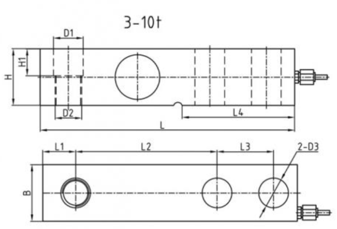 型號 | 量程(kN) | 量程(t) | L | L1 | L2 | L3 | L4 | B/H | H1 | D1 | D2 | D3 |