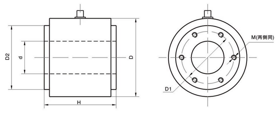 型號(hào) 量程(kN) 量程(t) D D1 D2 d H M TQ-H11 200 20 90 61 68 43 80 4-M6 500 50 130 93 108 65 110 6-M8 1000 100 160 113 128 85 110 6-M12 2000 200 220 170 190 120 120 6-M12